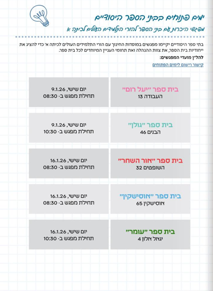 היום הפתוח בבי״ס אורנים יתקיים ביום שישי 9.1 בשעה 08:30